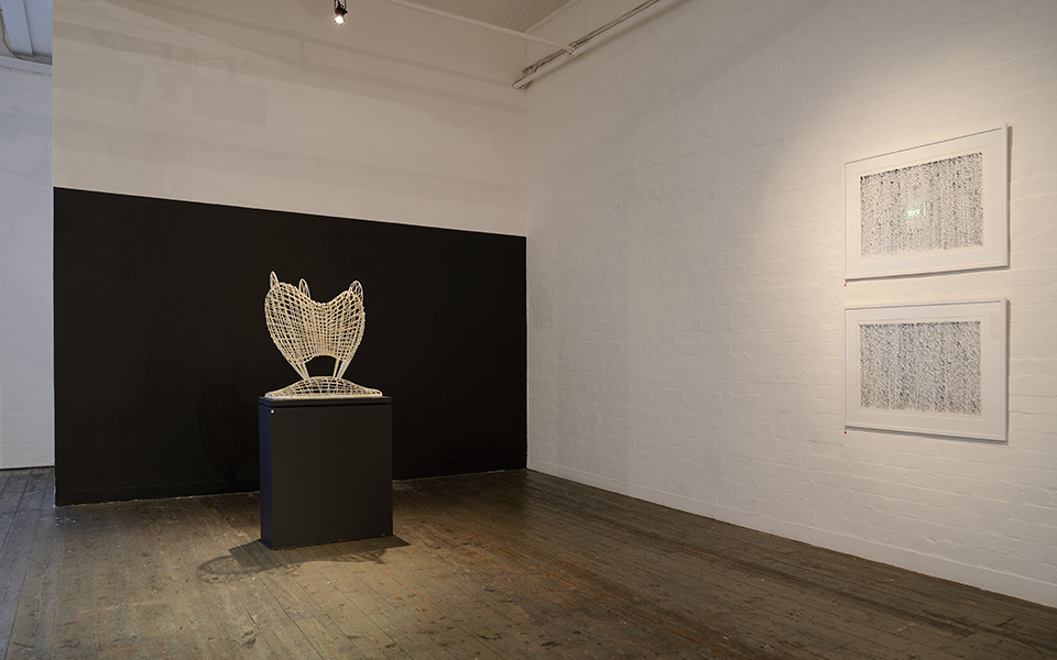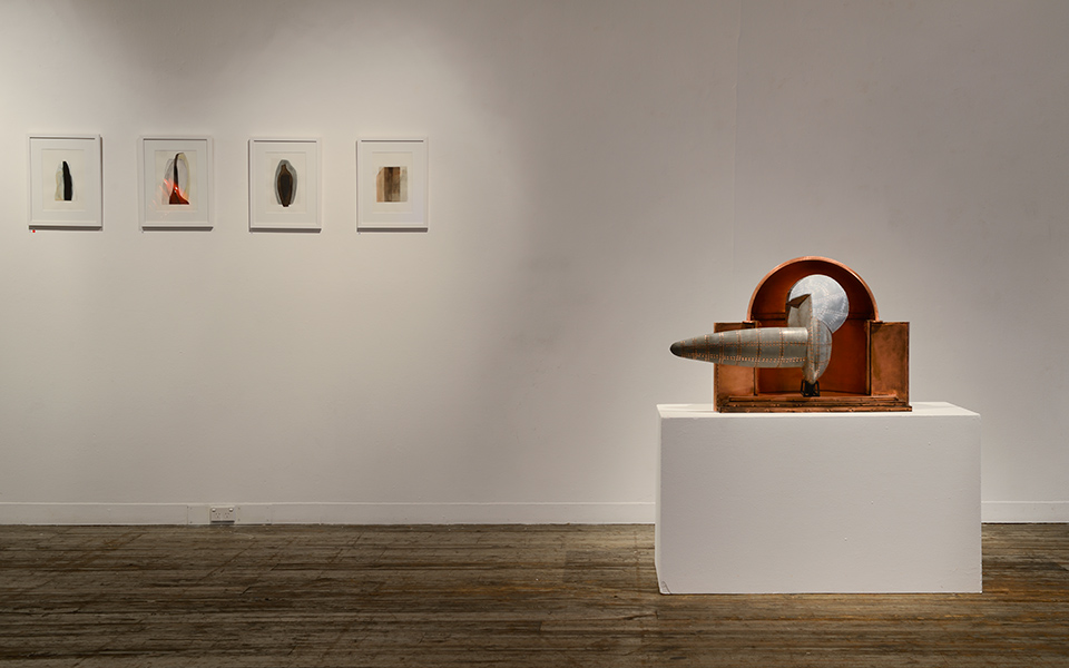 Works exhibited, Portrait in Blue, Portrait in Black, Flight, Dusk, Flight from Copper Temple, Central Australian Landscape, Phyllotaxis